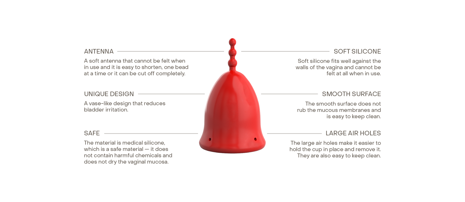 - Three different sizes. We are not all the same, several different sizes help you find the most suitable menstrual cup for yourself. It is recommended that you choose the size primarily according to the amount of leakage.